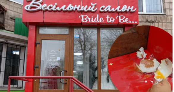 – Вона була в плямах від воску, але це можна виправити. Проблема в тому, що сукню розірвали чи порізали. Це відновити неможливо, її ніхто не вибере більше. Тому сказала клієнтці, щоб компенсувала повну вартість. Тобто ще 3 тисячі 700 гривень. Вона ж відповіла, що сукня вже була порвана. А її чоловік почав мене ображати, вживав нецензурну лексику й дослівно пригрозив: «Я вам ще здєлаю». І сьогодні зранку, 24 листопада, бачу таку картину — двері та вікна салону закидали курячими яйцями, – коментує пані Ірина.