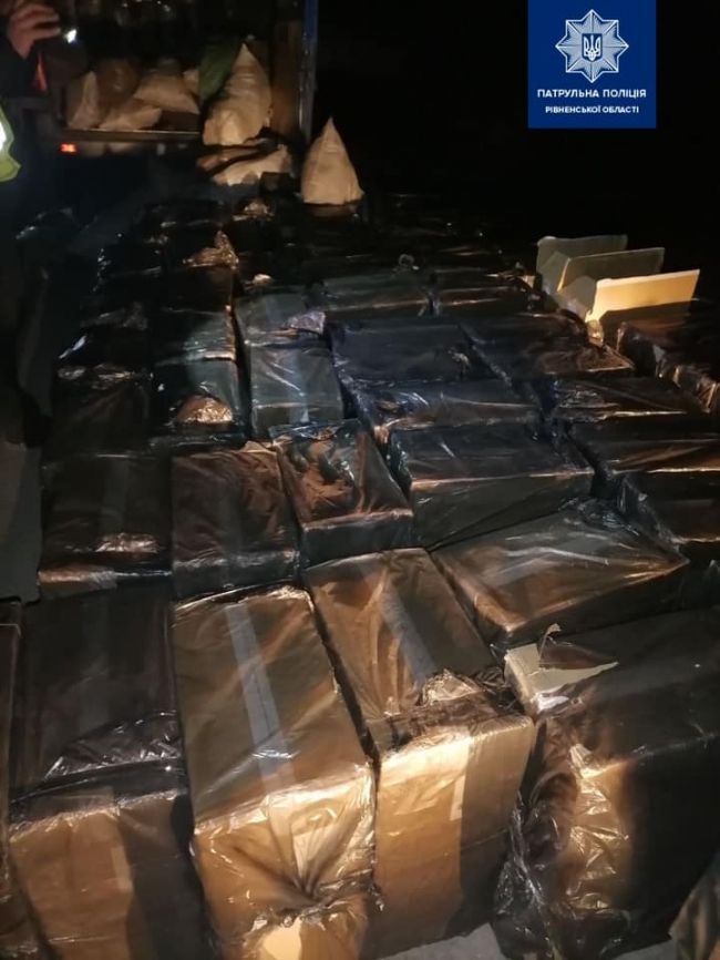 Тоді патрульні викликали слідчо-оперативну групу. Так, у машині виявили 107 ящиків, у кожному з яких було по 48 блоків із цигарками білоруського виробництва.