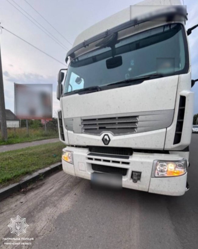 – Renault Premium інспектори виявили на вулиці Костопільській у місті Сарни. Поліцейські супроводили вантажівку до стаціонарного поста, де й зупинили.