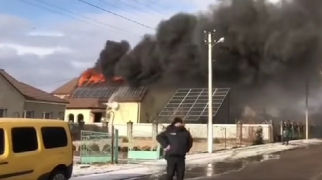 Також вогонь пошкодив дах житлового будинку. Як видно з відео у соціальних мережах, на даху будинку стоять сонячні батареї.
