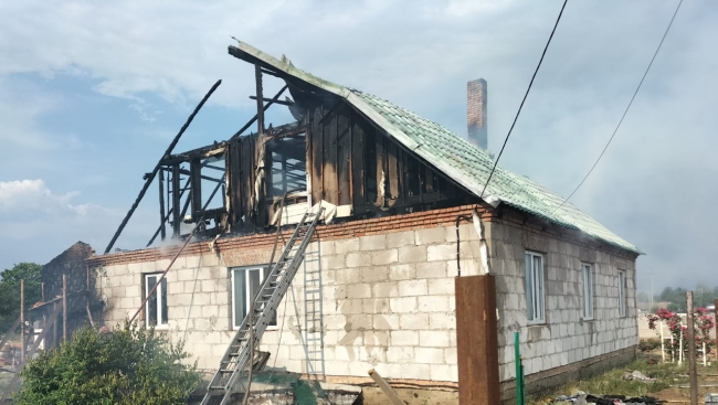 За вказаною адресою прибули місцеві рятувальники, які побачили, що горить дах житлового будинку.