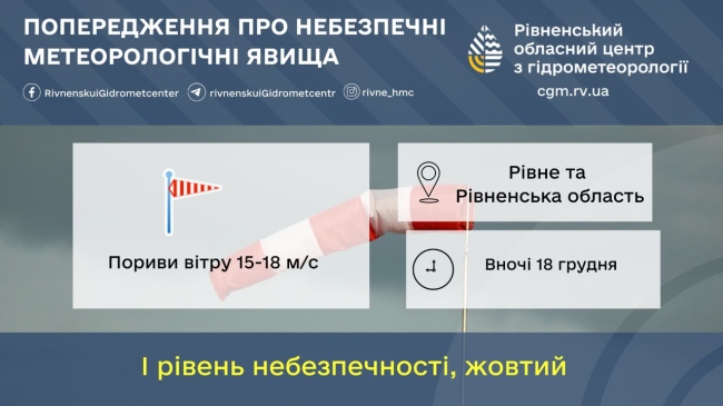 За прогнозом обласного центру з гідрометеорології, 18 грудня буде