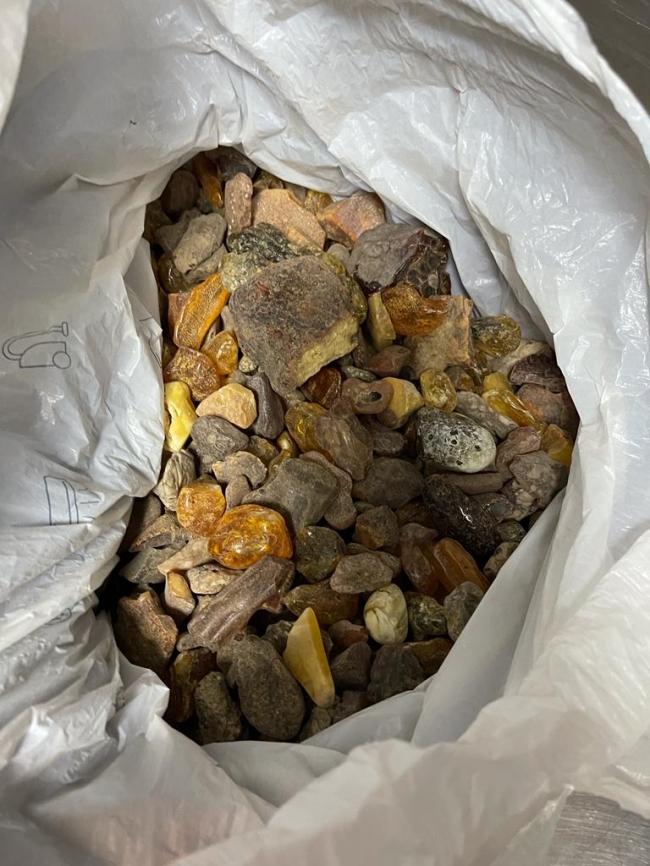 Під час огляду багажу громадянина України 1989 року народження правоохоронці виявили у його валізі два пакети з необробленим бурштином загальною вагою 4,4 кг.