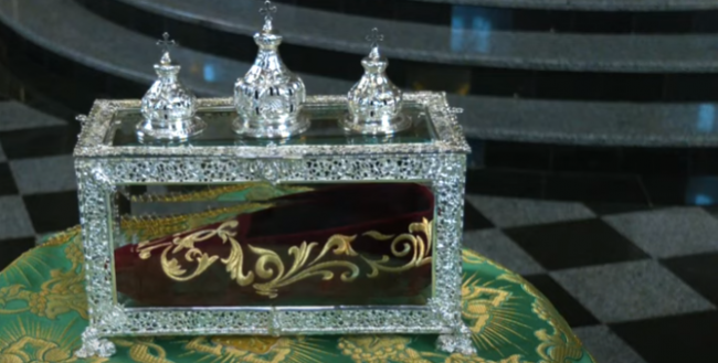 Святиню передав митрополит Кифисійський, Амарусійський і Оропольський Кирил. 28 серпня під час богослужіння святиню урочисто було винесено духовенством для вшанування. Ця святиня постійно перебуватиме у Покровському соборі, отож усі охочі матимуть можливість приклонитися до неї.