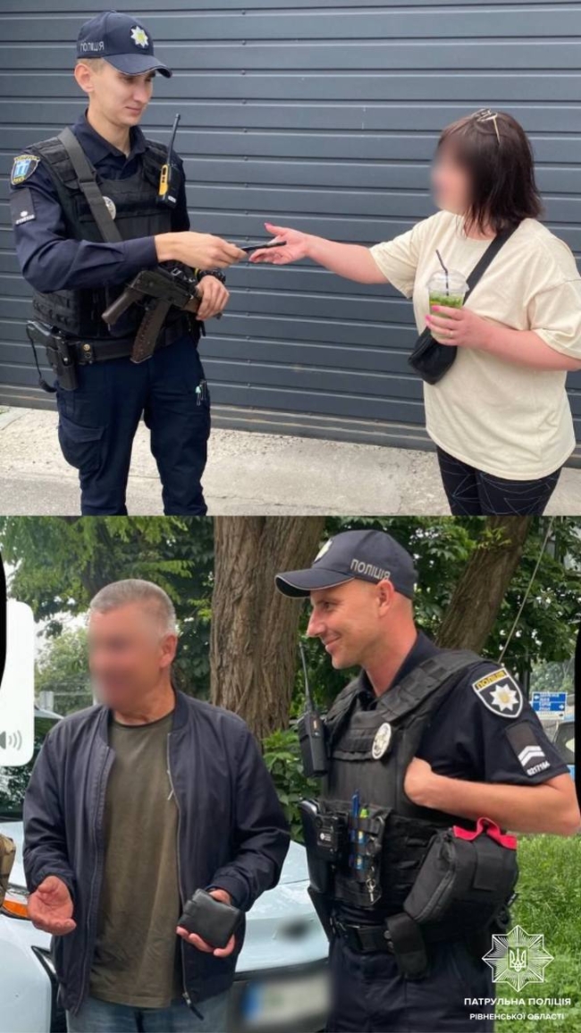 Пізніше, патрулюючи на вулиці Здолбунівській, патрульні знайшли загублений гаманець. У ньому були кошти, банківські картки, посвідчення водія та реєстраційний документ на авто.