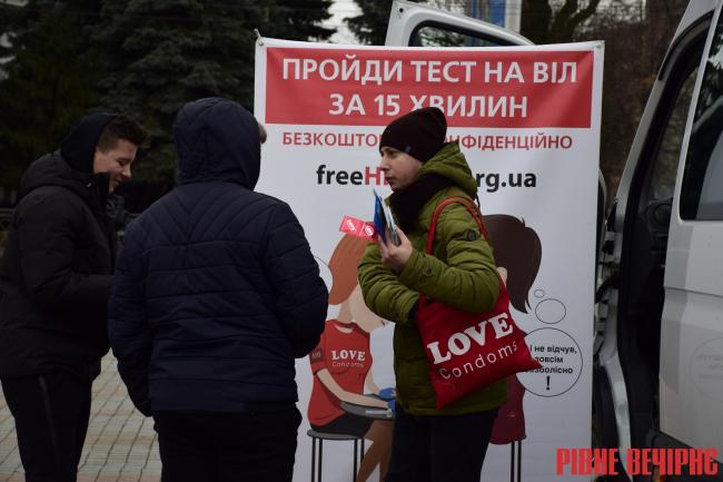 Також сьогодні з 22:00 до 23:00 у нічному клубі «Лагуна» усі охочі зможуть отримати безкоштовні презервативи та пройти тест на наявність ВІЛ-інфекції.