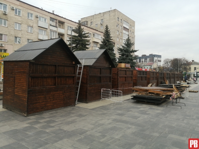 Окрім ялинки та святкової ілюмінації, знову працюватиме новорічний ярмарок. Дванадцять дерев’яних яток почали встановлювати ще учора. Сьогодні роботи залишилося уже не так багато – практично всі будиночки змонтовані. Зазвичай, у них щороку торгують різними смаколиками, горячими напоями та сувенірною продукцією.