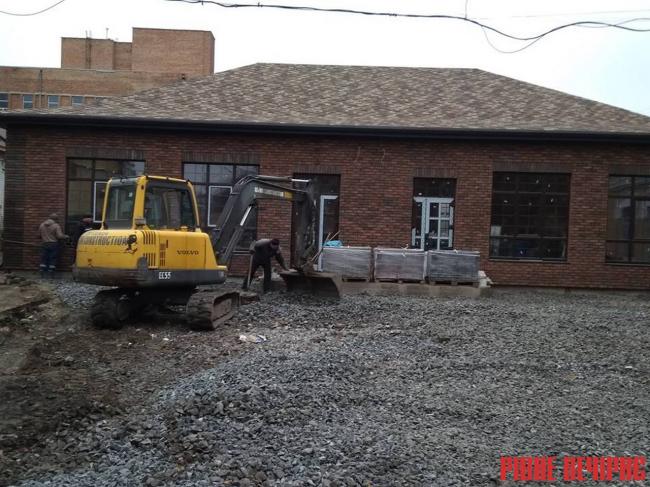 Як для «РВ» розповіли працівники на будівництві, вони зараз зводять невелику стіну, яку називають опорною. Мовляв, щоб бруківка не сповзала в яму. Бо вона знаходитиметься на підвищенні.