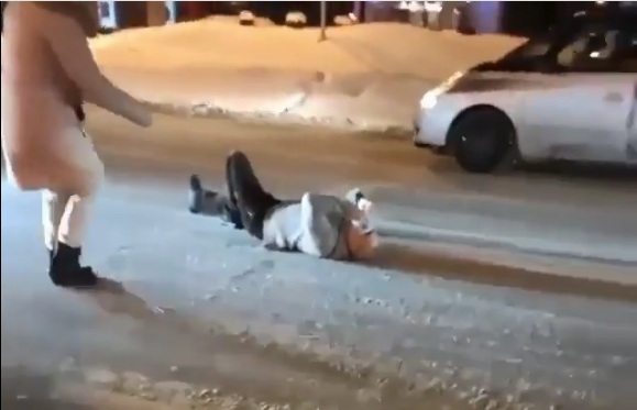 На ньому видно, як водій автомобіля схожий на “Тойота Ленд Крузер” з’ясовував стосунки з водієм автомобіля “Сітроен Берлінго”.