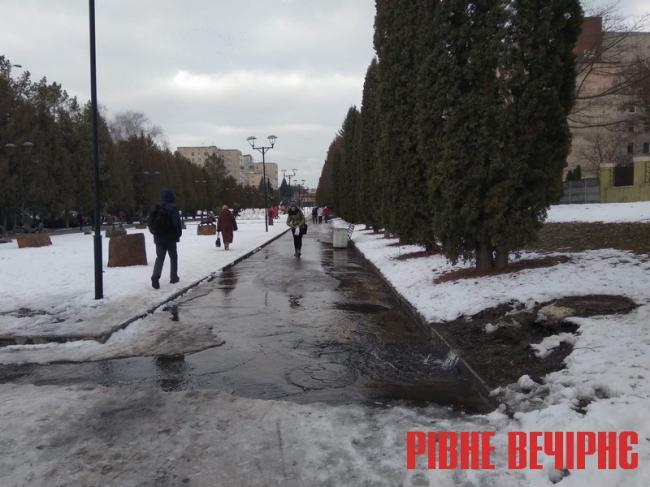 Тому в парку Молоді вода затоплює пішохідну доріжку, що створює чималі незручності для рівнян.