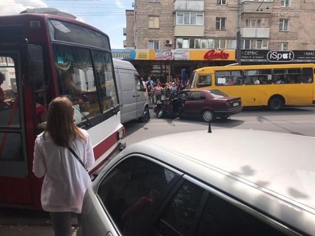 Через аварію рух транспорту центральною вулицею міста ускладнений.