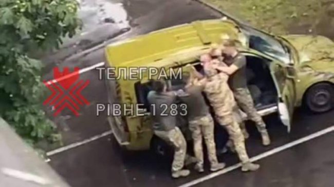Відео події опублікували 11 липня у телеграм-каналі «Рівне 1283». На ньому видно, як працівники ТЦК намагаються силою заштовхнути у бус перехожого: двоє з них бʼють чоловіка по тулубу, ще двоє – спостерігають. При цьому військовозобовʼязаний чинить активний опір і кличе на допомогу.