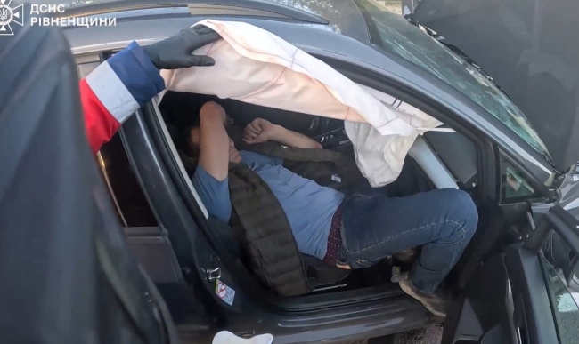 Від удару легковий автомобіль «Volkswagen Golf» так деформувався, що водія довелося рятувати.