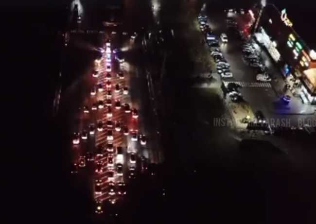 В центрі міста водії вибудували свої авто у формі ялинки та мерехтінням “аварійок” і яскравими ліхтариками телефонів створювали новорічний настрій під мелодію “о, зима мене не лякає, я її давно чекаю. і нехай холод за вікном, біля вогнища ми з з вином”, повідомляє у Фейсбуці Varash_Blog..