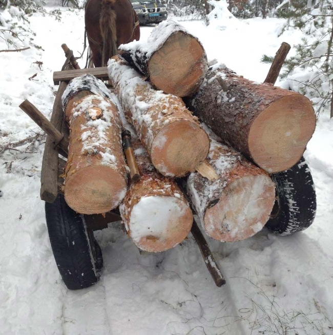 Під час огляду місця подія у лісовому масиві правоохоронці виявили гужову підводу, навантажену сімома сосновими колодами. Відповідного дозволу та документів на деревину у чоловіків не було.