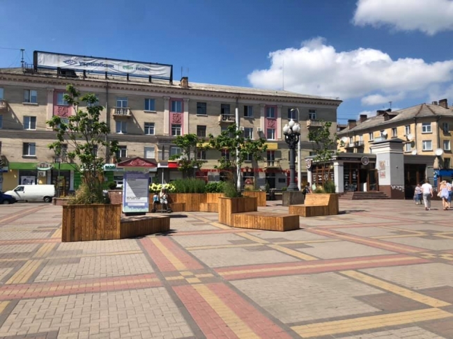 У Рівному успішно прийнялася зелень, яку посадили в тумбах на Театральній площі.