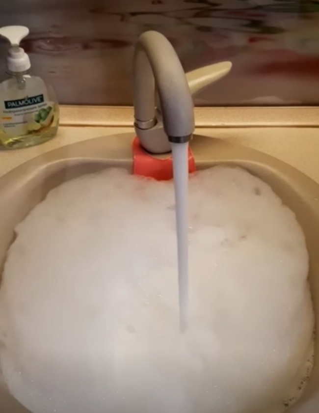 Наголошують, що рідина мильна, але запах її не хлористий, тож воду, ймовірно, дезінфікували.