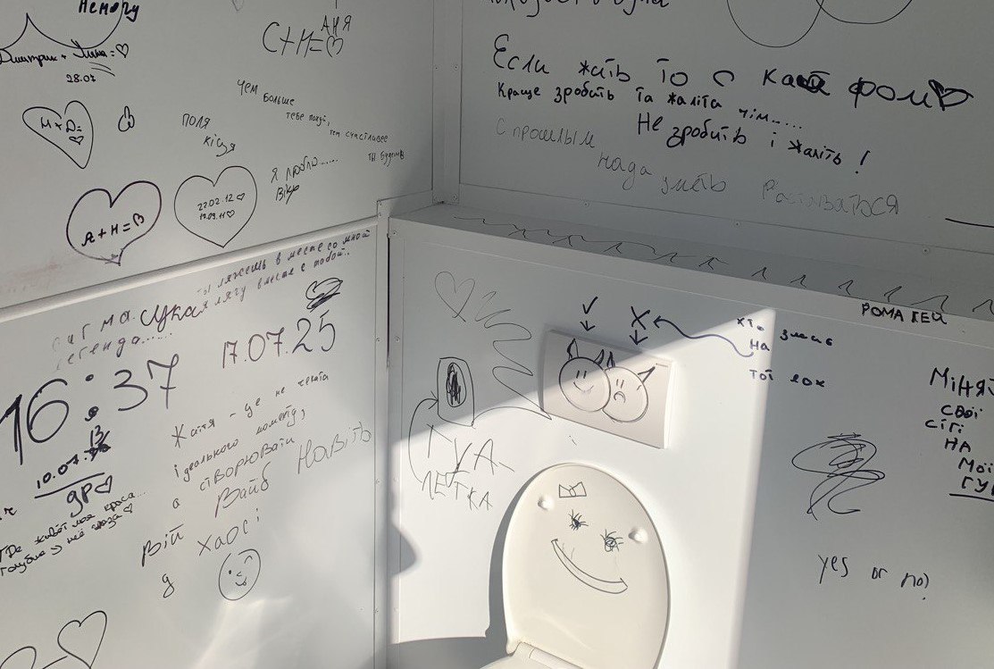 Наразі вбиральню у міському сквері відчистили. Працювали над цим комунальники та батьки дітей, чиї «координати» у соцмережах були вказані на розписах.