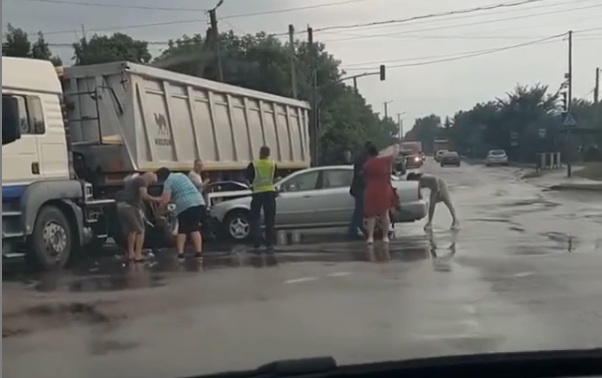 Легковий автомобіль посеред перехрестя врізався у вантажний автомобіль. Очевидці пишуть, що в цей момент там не працював світлофор.