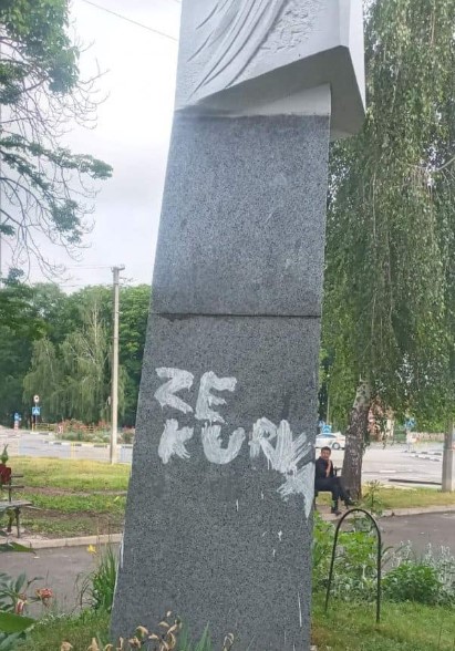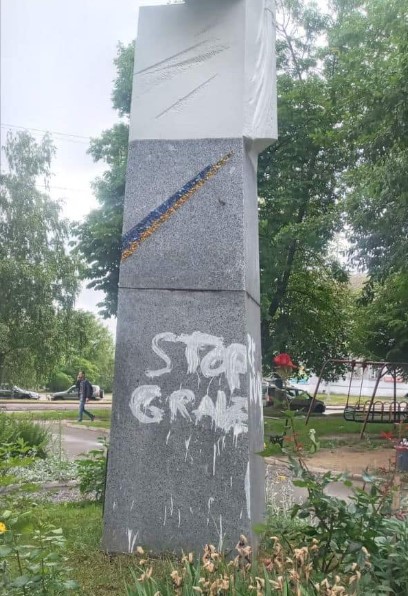 На пошкодження постаменту одразу відреагували та прибрали написи.