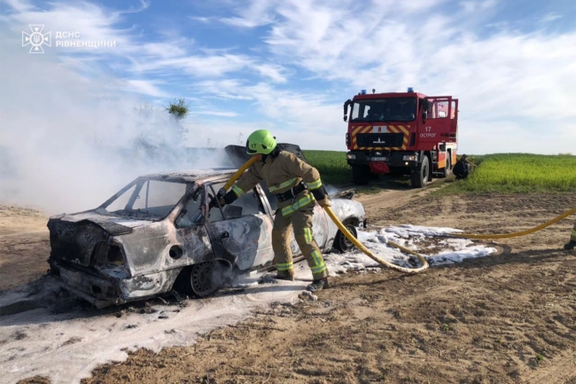 Сьогодні вранці рятувальників повідомили, що горить автомобіль поблизу села Дерев’янче Рівненського району.