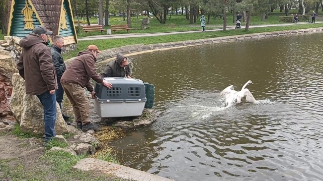 – Випущений лебідь полетів у природу. Ті лебеді, яких ми відпустили цього року — нова пара, яка була принесена нам восени. Ми їх відгодували, зігріли й відпустили на озеро в місто для реабілітації, дали їм шанс повернутися у природне середовище. Один птах скористався цією можливістю, другий — ще ні, — сказав Олег Павлюк.