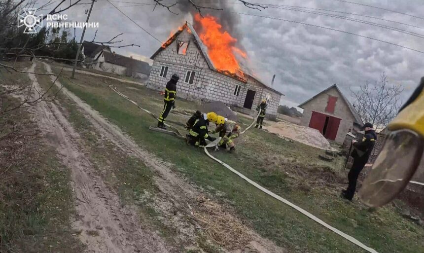 – Горів житловий будинок по вулиці Залізничній. На момент прибуття рятувальників вогонь повністю охопив дах та три кімнати. Щоб приборкати пожежу, бійцям ДСНС та місцевій пожежній команді села Стрільськ знадобилося майже дві години. Жертв та постраждалих не має. Причину займання та збитки встановлюють фахівці, – розповіли у ГУ ДСНС Рівненщини.