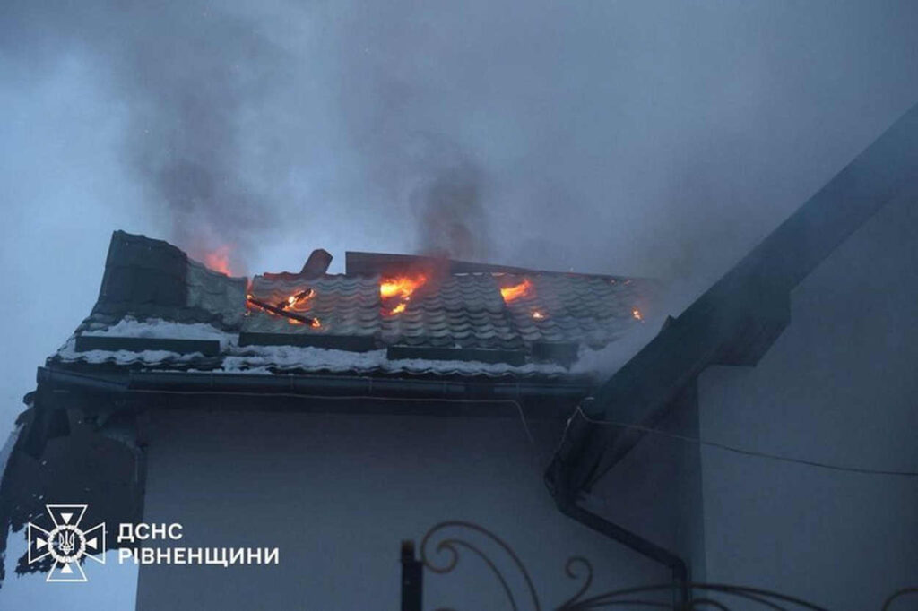 Туди, де виднівся чорний дим, помчали рятувальники. Росіяни спеціально дочекалися посилення морозів і вчергове націлилися по українській енергетиці. Під удар цього разу потрапили і житлові будинки — у Рівному та неподалік міста. В одному з них майже повністю знищено дах, ударною хвилею повибивало вікна