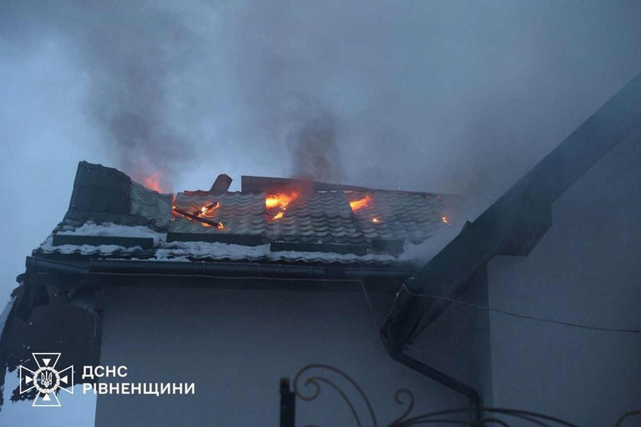 Туди, де виднівся чорний дим, помчали рятувальники. Росіяни спеціально дочекалися посилення морозів і вчергове націлилися по українській енергетиці. Під удар цього разу потрапили і житлові будинки — у Рівному та неподалік міста. В одному з них майже повністю знищено дах, ударною хвилею повибивало вікна