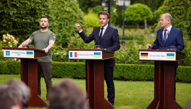 Про це Макрон заявив на спільній пресконференції з канцлером Німеччини, прем’єр-міністром Італії, президентом Румунії та президентом України у Києві, передає Укрінформ.