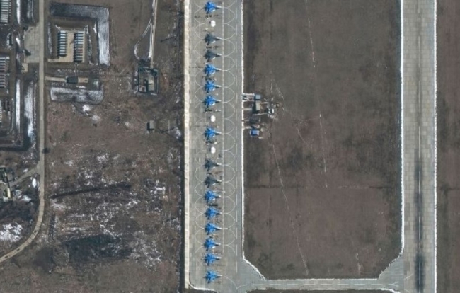 Супутникові знімки аеродрому, зроблені 4 квітня, показують, що на ньому було розміщено 26 літаків Су-34 та 3 Су-30/35.