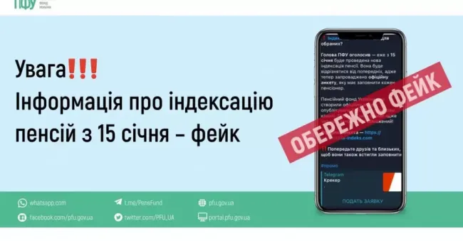 – Звертаємо увагу – це маніпуляція! Вона покликана спонукати довірливих користувачів перейти за посиланням, де відбуватимуться подальша реєстрація на закритий інформаційний канал та фішингові дії, – зазначили у Пенсійному фонді.