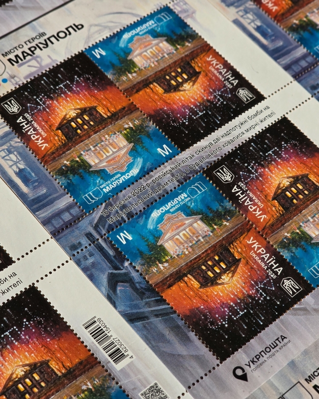 – «Сталева» поштова марка для тих, хто зі сталі. 16 березня — роковини чи не найстрашнішого злочину, скоєного росією. Цього дня росіяни скинули дві надпотужні бомби на будівлю Маріупольського драмтеатру. Їх не спинили написи «Дети», що виднілися навіть із супутника. Загинули сотні людей, зокрема жінки й діти, які шукали прихисток. І не знайшли його, – йдеться в повідомленні Укрпошти.