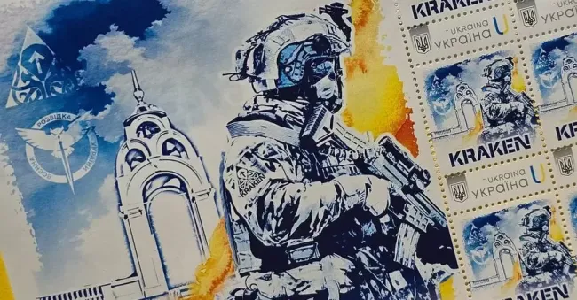 Дизайн маркового аркуша та конверта розроблений самою командою KRAKEN. На марках зобразили один із символів незламного міста-героя Харкова – альтанку-фонтан Дзеркальний струмінь.