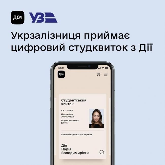 Загалом Укрзалізниця приймає вже чотири цифрові документи з Дії: ID-картку, закордонний біометричний паспорт, водійське посвідчення та студентський квиток.