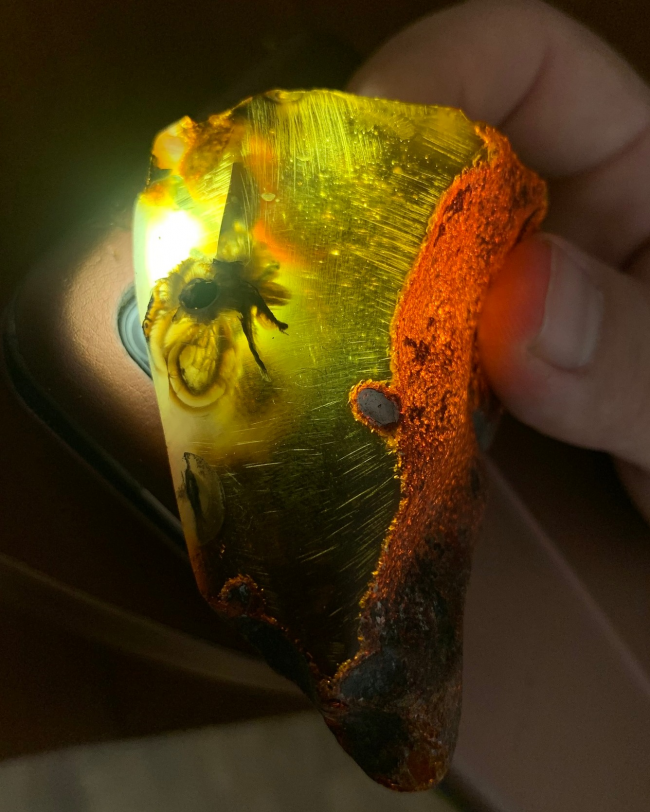 – Друзі! На родовищі Гальбин, що на Сарненщині, ми знайшли комаху, якій приблизно 30-40 мільйонів років! Вона потрапила у смолу прадерев і затверділа, перетворившись на бурштин. Це явище називається інклюзією, тобто включенням. В іншому камінці — повітряні бульбашки.Інколи у бурштинових шматочках трапляються залишки або цілі листочки давніх рослин, різних павукоподібних: кліщів, павуків, скорпіонів, а також комах – примітивних безкрилих, двокрилих. Це дозволяє вченим краще вивчити стародавній світ.Бурштинові вироби з інклюзіями – найдорожчі, особливо з включеннями комах, зокрема мурашок та павуків. Адже ці інклюзії складно знайти, тому вони цінуються особливо.