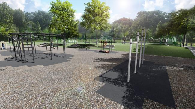 Будуть споруджені просторові лазанки, які зараз активно використовуються дітьми, пропонується почистити та перефарбувати. Також передбачено влаштування додаткових елементів у вигляді каскаду турніків для різновікових груп, бруси, бруси-прес, балансир з дерев’яних колод та батути для стрибків.