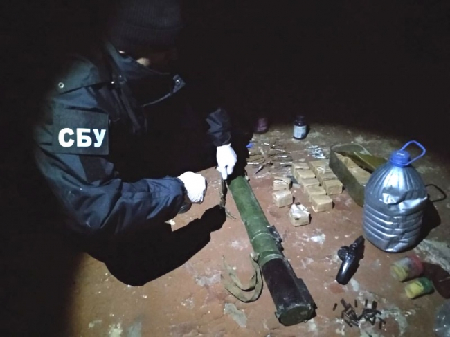 На місці події слідчо-оперативна група виявила 1080 патронів калібру 5,45 мм, 38 — 5,6 мм, револьвер, два шматки вибухової речовини (ракетне паливо), сім імітаційних запалів, дев’ять електро-детонаторів, дві пластикові ємкості, в яких знаходились пластична речовина схожа на вибухову, одну реактивну протитанкову ракету, шестилітрову полімерну пляшку із гранульованою вибуховою речовиною типу окисник і відновник на основі аміачної селітри та алюмінієвого порошку.
