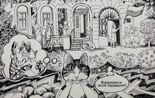 В залі камерної та органної музики Рівненська обласна філармонія 1 червня о 17:30 відбудеться відкриття виставки «Щоденник війни. Марісель і Панна Котта рятують культурну спадщину».