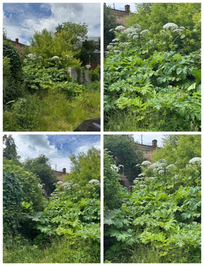 – На вулиці адреса Соборна, 282. Водонапірна башта. Вся територія в заростях шкідливих рослин, борщівник. Він вже понад 2 метри зростом. Фото додаю, не можуть знайти власника, територія приватна.