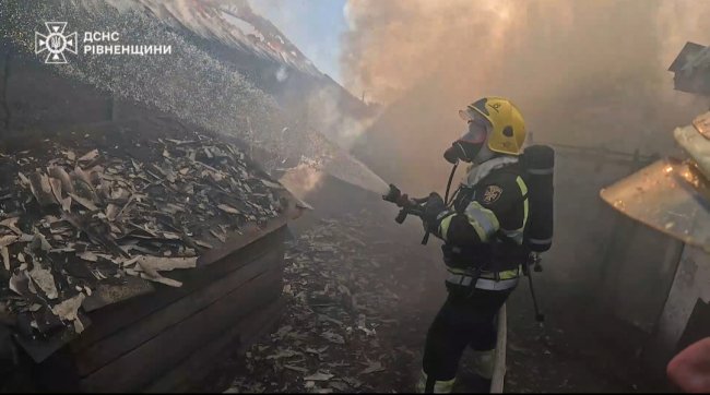 – Внаслідок пожежі вогнем знищено покрівлю та перекриття дерев’яної господарської будівлі, а також 5 складометрів дров та 1,5 тонни сіна. Крім того, пошкоджено 10 м² покрівлі господарської споруди, що належить сусідньому домогосподарству, – розповіли у ГУ ДСНС Рівненщини.