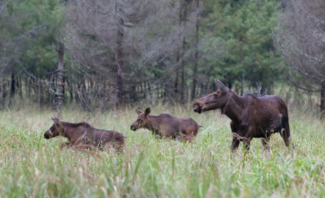 Рівнянин Павло Дмитришин зняв на камеру самку та малих лосів, які бігли лісом.