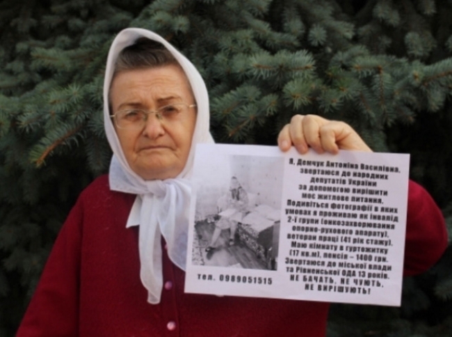Антоніна Демчук — мабуть, найвідоміша пікетувальниця у Рівному. Багато років перехожі могли бачити її з плакатами на майдані Незалежності, на Поштовій, біля будівлі, в якій проходять сесії міськради. Вона також роками ходила до чиновників, вимагаючи надати їй безкоштовне житло. А нещодавно її проблему знову обговорювали — на засіданні міськвиконкому.