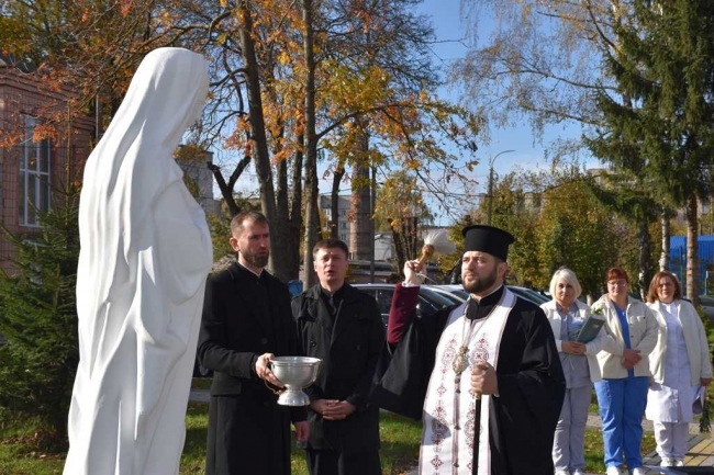 Ініціатива розмістити фігуру Діви Марії на території лікарні належить її директору Віктору Ткачу, який переконаний, що фізичне здоров’я неможливе без здоров’я духовного.