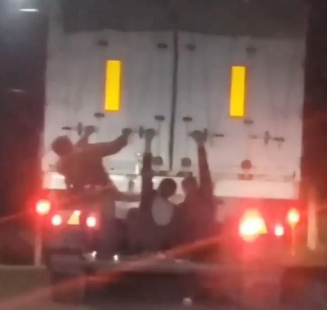 Як йдеться у групі «typove.rivne», троє парубків причепилися до дверцят вантажівки, яка рухається.