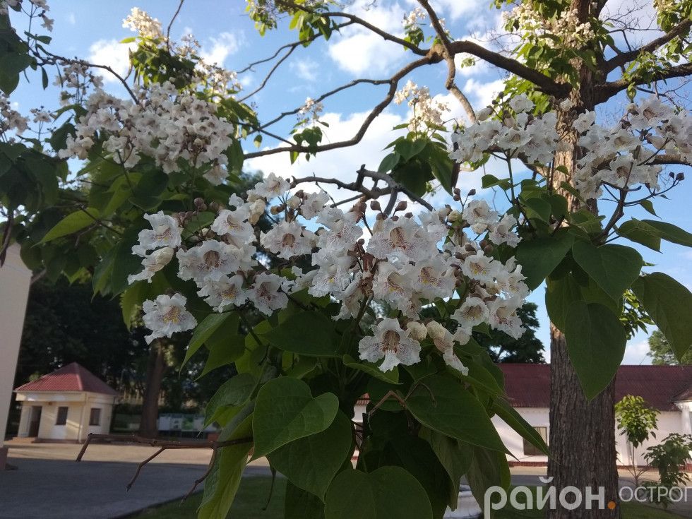 Це високе дерево з великими біло-рожевими квітами навесні тішить ніжними суцвіттями поміж зеленого лапатого листя, а восени – великими стручками дивовижної форми, повідомляє Оstrog.rayon.