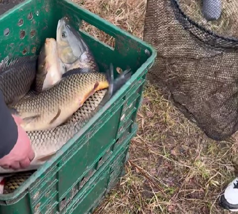 Загалом до водойми запустили сто кілограмів амура та коропа, повідомляє у Facebook Юрій Демчук.