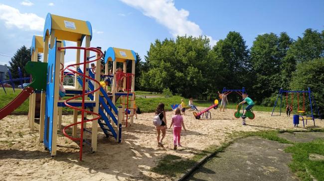 Він знаходиться поруч із спортивними тренажерами. Дитячий майданчик встановили за кошти з міського бюджету, повідомляє прес-служба міської ради.