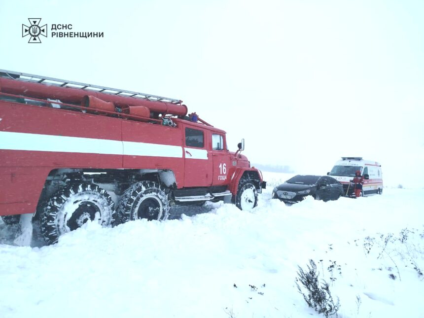 – Медики швидкої транспортували до лікарні чоловіка зі зламаною ногою. Бійці ДСНС оперативно відбуксирували автомобіль зі снігового замету, після чого транспортний засіб продовжив рух до медзакладу, – розповіли у ГУ ДСНС Рівненщини.