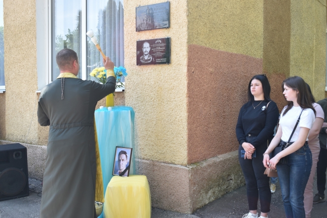 Відкриття та освячення меморіальної дошки здійснив військовий капелан протоієрей Тарас Гордійчук.